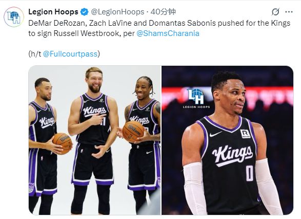 Shams還透露:國王的關(guān)鍵球員也支持威少加盟,其中之一是小薩博尼斯,他們曾在俄克拉荷馬城一起打球,還有另外兩名球員,德羅贊和扎克-拉文,他們和威少一樣都有洛杉磯背景。此外,他還認識國王的新任助理總經(jīng)理,在等待了四個月之后,這位前MVP將在薩克拉門托開始他的第18個賽季!
