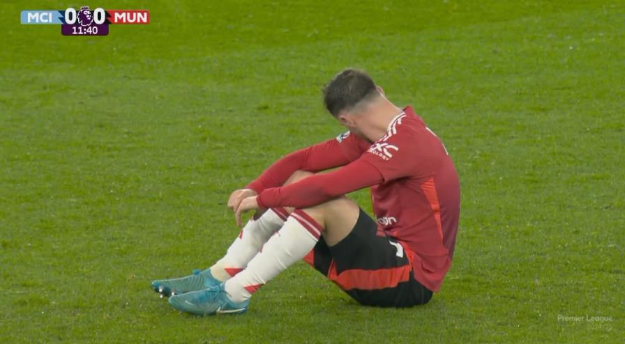 曼聯2-1曼城的比賽中,芒特首發(fā)出戰(zhàn),第13分鐘傷退。